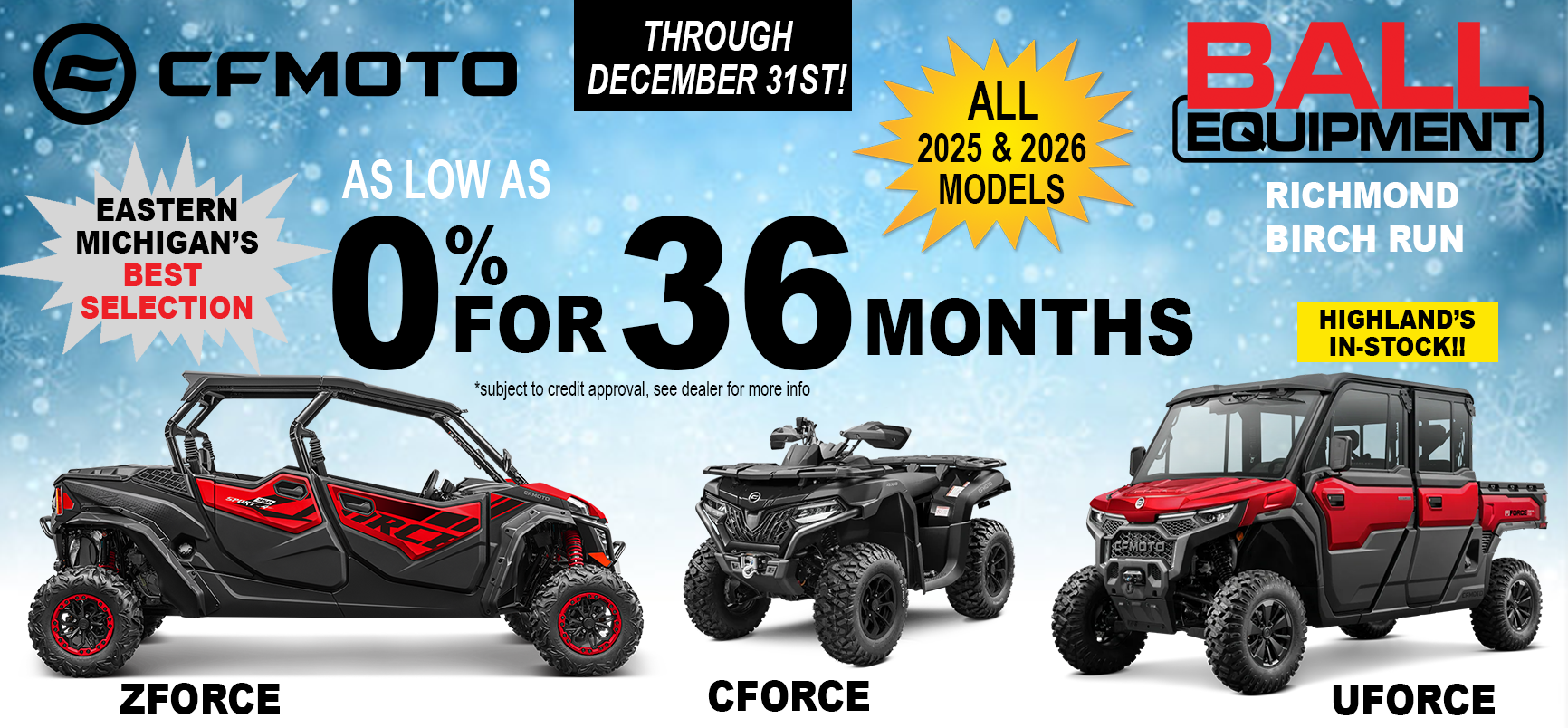 CFMOTO WINTER SALES EVENT! "0% FINANCING FOR 36 MONTHS" - - Offer Valid Through December 31st!!