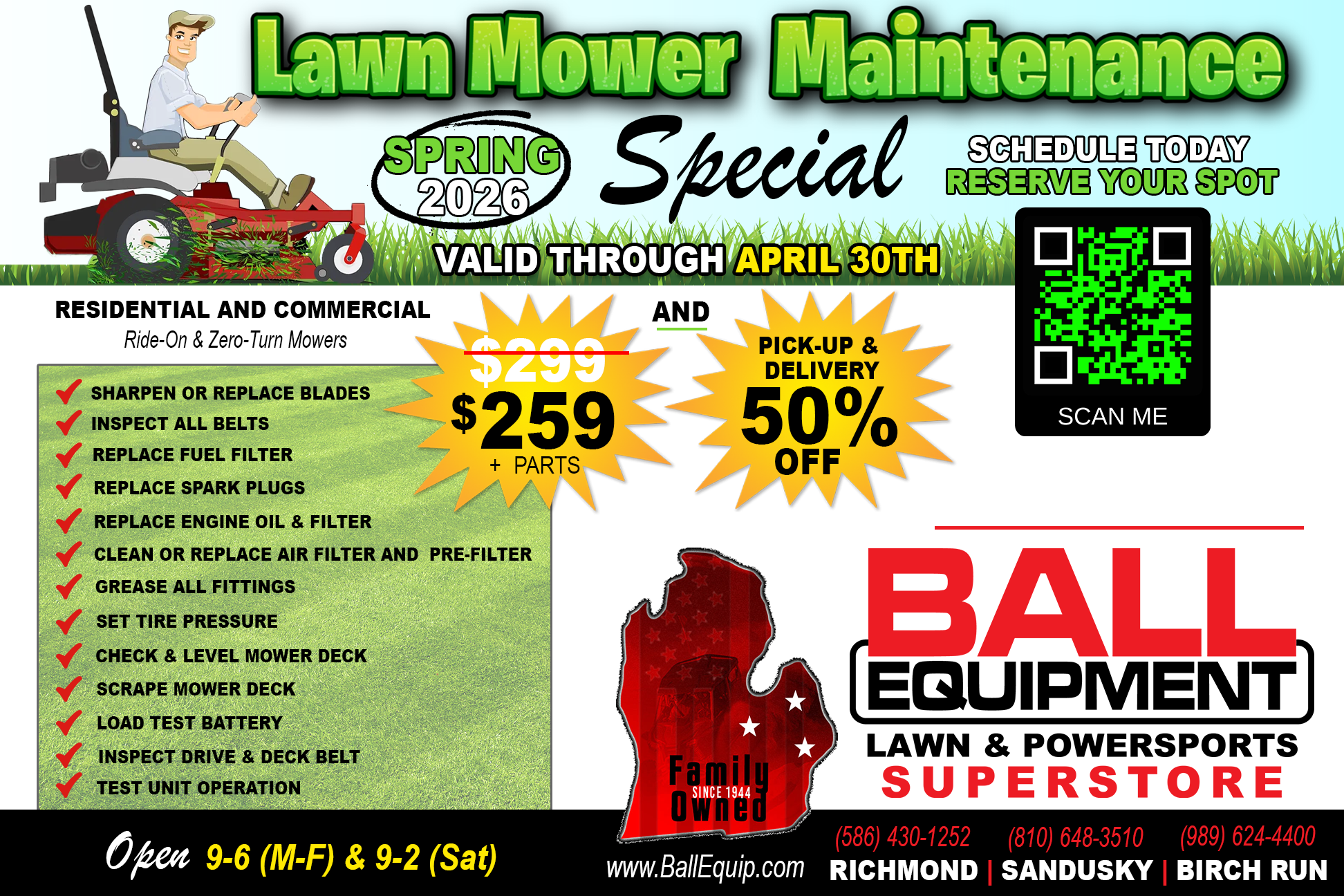 Please note that these specials are available for a limited time only, so don't miss out on this opportunity to give your lawn mower the care it deserves!